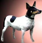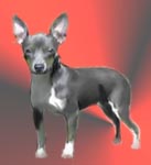 an example of a blue, white and tan Rat Terrier. He is 12 pounds and stands
